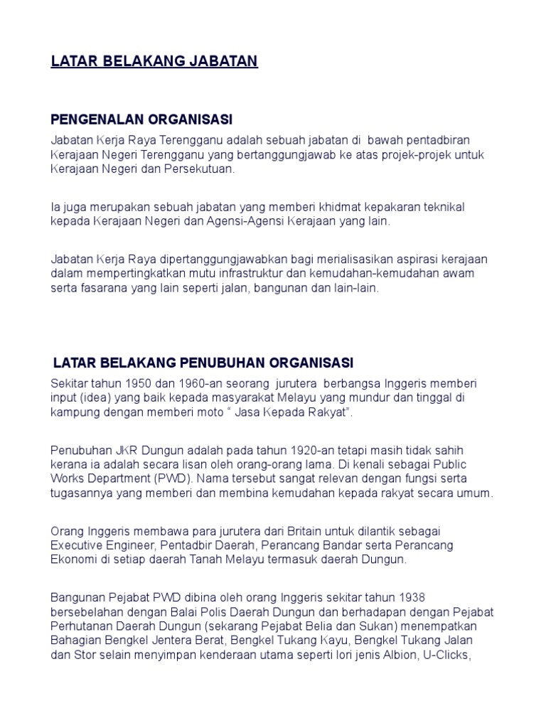 Fungsi Jabatan Kerja Raya - See more of jabatan kerja raya malaysia ( public works department ) on facebook.. Pengarah kerja raya melaka nama : Berikut adalah fungsi dan manfaat dari setiap program bpjs ketenagakerjaan. Identitas jabatan yang berupa nama jabatan, kode jabatan, letak jabatan, dan ikhtisar jabatan. Dahulunya, jabatan kerja raya merupakan satu jabatan kerajaan yang diberi tanggungjawab memikul amanah didalam menyediakan kemudahan infrastuktur awam seperti jalan, bangunan dan jambatan. Pusat penyelidikan perhutanan sepilok 204 km.