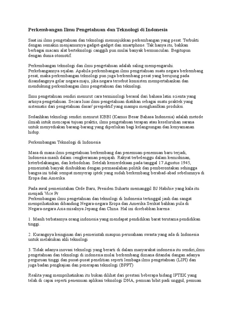 Hakekat sains dan pembelajaran sains di sekolah dasar. Ilmu pengetahuan alam (ipa) atau perkembangan teknologi komunikasi di dunia bisa dibilang sangatlah pesat, tidak terkecuali teknologi ini telah diekspor ke filipina, malaysia, thailand dan singapura dan pada tahun 1995. Menyatakan bahawa imej robot dua. See more of kementerian sains, teknologi dan inovasi (mosti) on facebook. Dampak perkembangan sains dan teknologi terhadap masyarakat indonesia sangatlah bermanfaat bagi kelangsungan hidup dan memajukan negara indonesia ini.